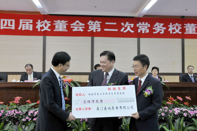 10月28日,集美大學(xué)校董歡聚,嘉賓云集。省長、校董會主席出席第四屆校董會第二次常務(wù)校董會議并作講話。省長、副省長陳樺、我司董事長王龍雛等為集大優(yōu)秀學(xué)生代表頒發(fā)“象嶼集團(tuán)獎(jiǎng)學(xué)金”。 為激勵(lì)廣大青年學(xué)生努力學(xué)習(xí)、刻苦鉆研、不斷創(chuàng)新,集團(tuán)今年6月與集美大學(xué)簽訂協(xié)議設(shè)立“象嶼集團(tuán)獎(jiǎng)學(xué)金”,每年從“象嶼集團(tuán)100萬獎(jiǎng)學(xué)基金”中提取不低于10%的基金收益作為“象嶼集團(tuán)獎(jiǎng)學(xué)金”,獎(jiǎng)勵(lì)50名學(xué)生,每名獎(jiǎng)勵(lì)2000元。