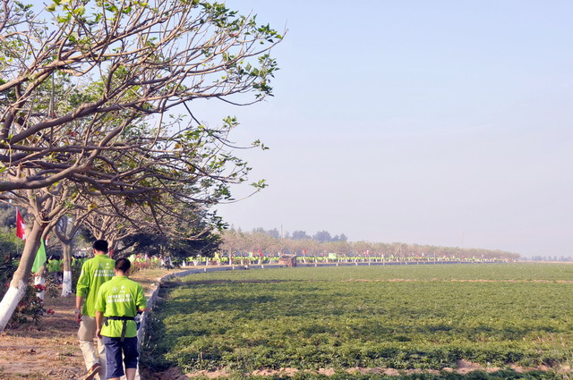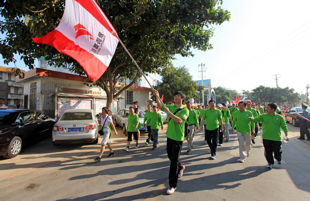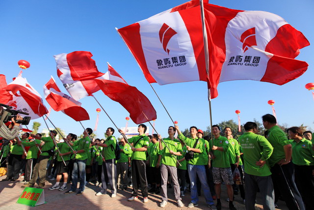 旗幟飄揚(yáng),千人象嶼團(tuán)隊分外引人注目。