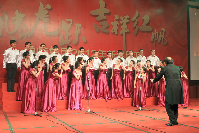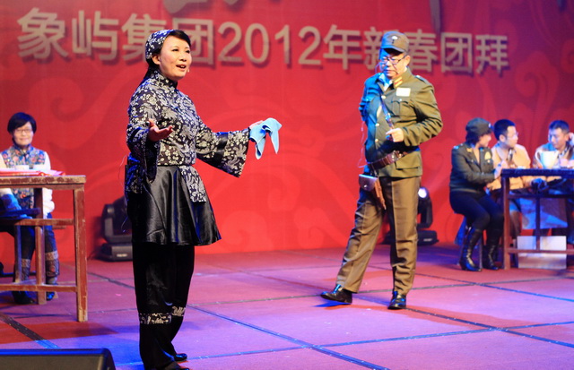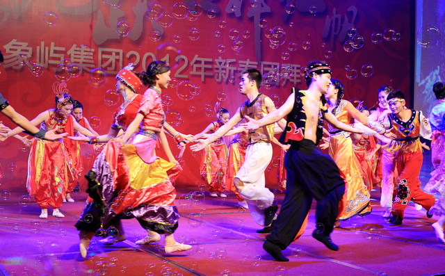 團(tuán)拜會(huì)上,象嶼人自編自導(dǎo)自演的春晚節(jié)目盛大登場(chǎng)。象嶼建設(shè)集團(tuán)獻(xiàn)演的歡慶歌舞《盛世中華》,身著民族節(jié)慶服飾的姑娘小伙們熱情奔放,氣勢(shì)恢弘;象嶼股份火辣的阿拉伯舞《美麗的姑娘賽比古兒》驚艷全場(chǎng),扭轉(zhuǎn),抖肩,甩胯,窈窕的姑娘們盡情地綻放著耀眼的青春;上海區(qū)域選送京劇《智斗》,叱咤上海灘的各位公司高管齊登戲臺(tái),無論是司令還是阿慶嫂,范兒倍足,調(diào)兒倍正,十足個(gè)性演繹,引發(fā)臺(tái)下叫好不斷;集團(tuán)公司聯(lián)合象嶼資產(chǎn)、象嶼配送、象嶼碼頭、象嶼建設(shè)表演的歌舞聯(lián)唱《歲月如歌》,高中基三級(jí)同臺(tái),老中青三代盡歡,不同風(fēng)格的歌舞串聯(lián),展現(xiàn)的是象嶼文化的包容與開創(chuàng);福建/南平象嶼公司逗趣的《小人舞》創(chuàng)意無限,傳神的表情映襯恰到好處的肢體動(dòng)作,笑點(diǎn)不斷,而很難想象的是每個(gè)人物都由雙人搭配,紅幕后是團(tuán)隊(duì)配合的默契;速傳物流活潑優(yōu)美的新疆舞《掀起你的蓋頭來》充滿戲劇色彩,群舞韻律動(dòng)感,對(duì)舞火花擦撞,多情的青年男女追尋著炙熱的愛情,也寓意著象嶼人勇于追求心中美好的向往。春晚在晨帆合唱團(tuán)歡快的《陽(yáng)光進(jìn)行曲》中成功落下帷幕。團(tuán)拜會(huì)現(xiàn)場(chǎng)歡樂、祥和,晚宴期間穿插的抽獎(jiǎng)活動(dòng),更讓驚喜的歡呼尖叫聲接連不斷,公司為辛勤一年的員工們準(zhǔn)備的豐厚大禮,掀起現(xiàn)場(chǎng)一次又一次的高潮。