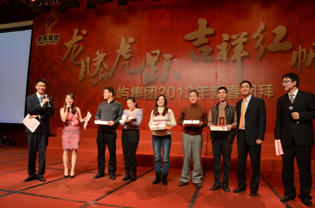 兔樂豐倉(cāng)送舊年,龍騰喜浪迎新紀(jì)。1月14日晚,年度表彰大會(huì)后,象嶼集團(tuán)2012年新春團(tuán)拜會(huì)在廈門國(guó)際會(huì)展酒店隆重舉行。象嶼集團(tuán)在廈各公司員工、異地公司代表、退休老同志等上千人歡聚一堂,喜迎龍年新春佳節(jié)。王龍雛董事長(zhǎng)率集團(tuán)黨委會(huì)、董事會(huì)、經(jīng)營(yíng)班子成員共同舉杯給全體員工拜年,向全體象嶼同仁、家屬和離退休老同志表示親切的慰問和美好的祝愿。對(duì)員工過去一年的辛勤付出表示衷心感謝和誠(chéng)摯敬意。