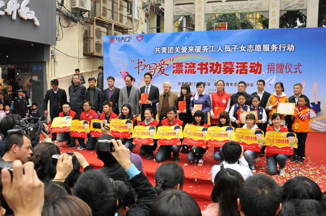 3月4日下午,在中山路步行街的活動(dòng)現(xiàn)場(chǎng),集團(tuán)的志愿者們將整理好的六大箱愛(ài)心圖書(shū)贈(zèng)送給了來(lái)廈務(wù)工人員子弟學(xué)校,并參加了現(xiàn)場(chǎng)的“書(shū)寫(xiě)愛(ài)”漂流書(shū)勸募活動(dòng),向社會(huì)傳遞我們象嶼人的公益和愛(ài)心。