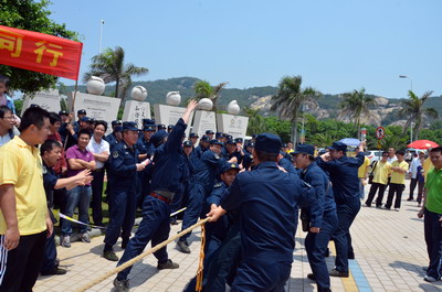 陽光明媚、海浪輕拍,大雨洗滌過的海濱分外清新。員工和官兵代表們絡(luò)繹不絕、配合默契撿拾木棧道沿途垃圾,志愿者紅色馬甲與海軍藍(lán)色制服錯落分布,構(gòu)成海灘一道獨特亮麗的風(fēng)景線。員工子女們也顧不得滿頭大汗,興沖沖地?fù)炱鸨缓K疀_上岸的雜物,用心體會著環(huán)保的理念和勞動的快樂。音樂廣場上的拔河比賽和趣味游戲?qū)F(xiàn)場氣氛推向高潮。來自集團和海軍南方局的16支代表隊奮力拼搏,拉拉隊員激情吶喊,充分展現(xiàn)了廣大員工和現(xiàn)代軍人團結(jié)拼搏的精神風(fēng)貌。經(jīng)過激烈角逐,象嶼碼頭、海軍南方局代表隊拔得頭籌,分獲甲、乙組冠軍。由貿(mào)易、建設(shè)、速傳、資產(chǎn)四家工會精心準(zhǔn)備的趣味游戲吸引了眾多員工及家屬參與,“龍鳳戲珠”、“呼啦行進”、“勇闖長繩”、“向快樂出發(fā)”等環(huán)節(jié)異彩紛呈,歡呼聲、叫好聲,高潮迭起。