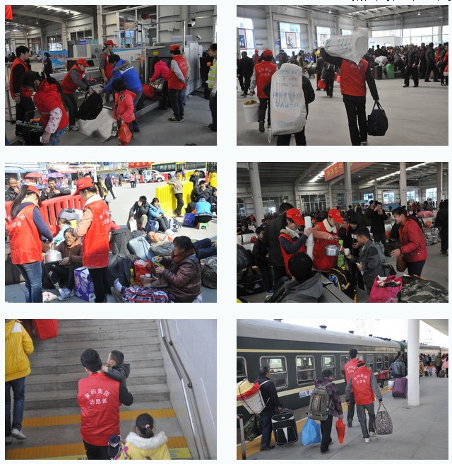 今年已是集團第三年組織參加春運服務(wù)。雖然是周末休息日,但我們的志愿者一早就到達(dá)服務(wù)區(qū)域:有的協(xié)助搭建志愿者暖洋洋服務(wù)站并駐點服務(wù),有的負(fù)責(zé)整個廣場及候車廳外圍的引導(dǎo)和搬運,有的負(fù)責(zé)協(xié)助候車廳安檢及廳內(nèi)服務(wù),還有的幫助那些攜幼提重的旅客順利登車。
