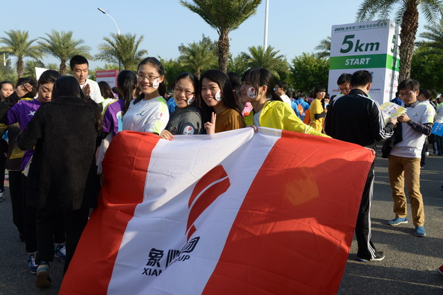 12月13日,90多名象嶼長(zhǎng)跑愛好者早早地從廈門各個(gè)角落聚集到海滄大道,參加2015年廈門國(guó)際馬拉松賽5公里、10公里健康跑。