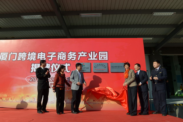 市委常委、統(tǒng)戰(zhàn)部部長(zhǎng)黃菱,副市長(zhǎng)張燦民為廈門跨境電子商務(wù)產(chǎn)業(yè)園揭牌,并見證了跨境電商出口第一單貨物上線測(cè)試。