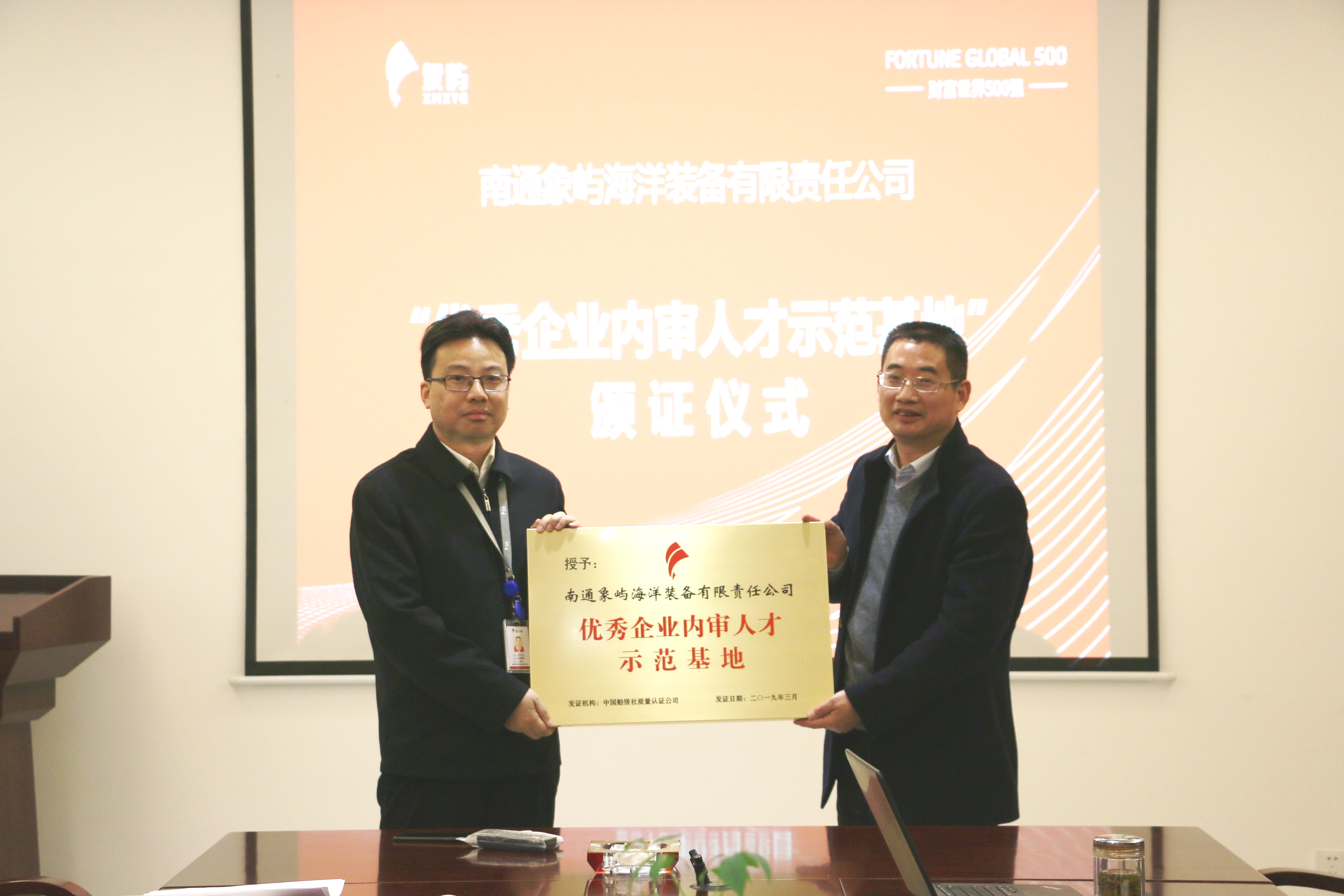 3月26日下午,中國(guó)船級(jí)社(簡(jiǎn)稱“CCS”)授予象嶼海裝全國(guó)首家“優(yōu)秀企業(yè)內(nèi)審人才示范基地”牌匾。象嶼海裝是迄今為止全國(guó)唯一一家獲得該稱號(hào)的企業(yè)。